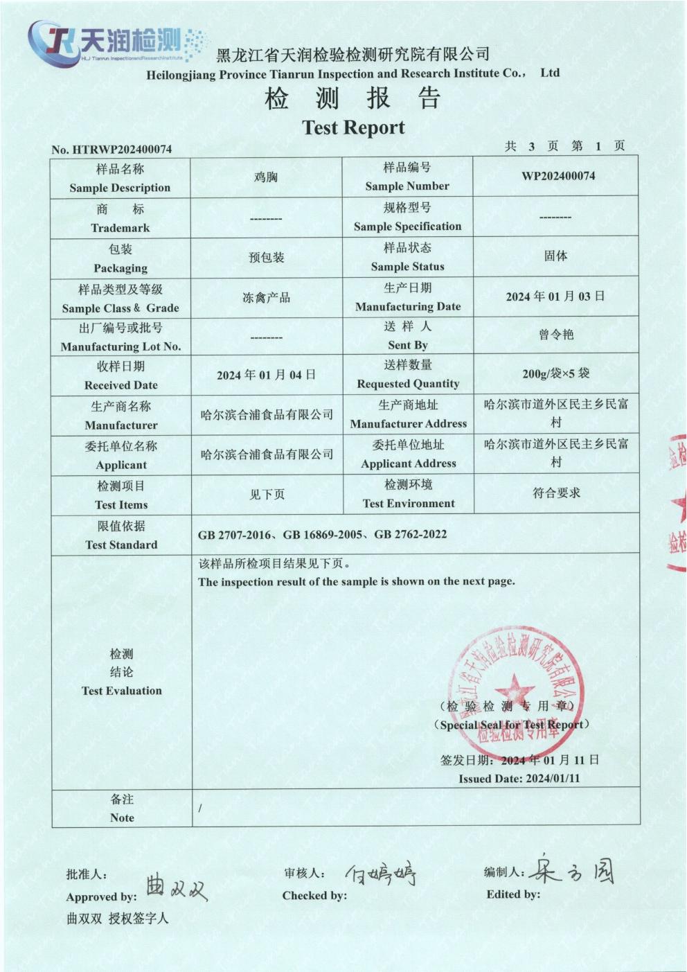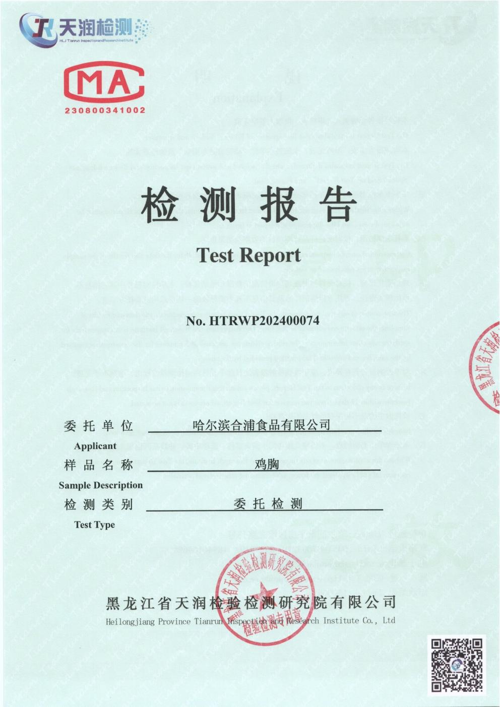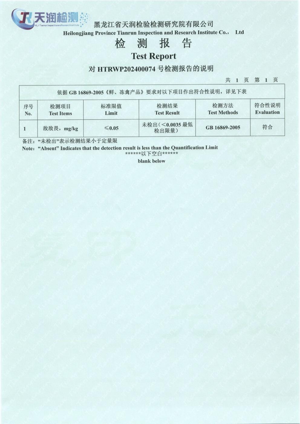 2024年1月份雞肉產(chǎn)品檢測(cè)報(bào)告