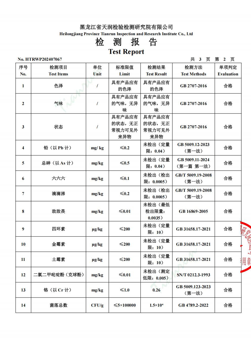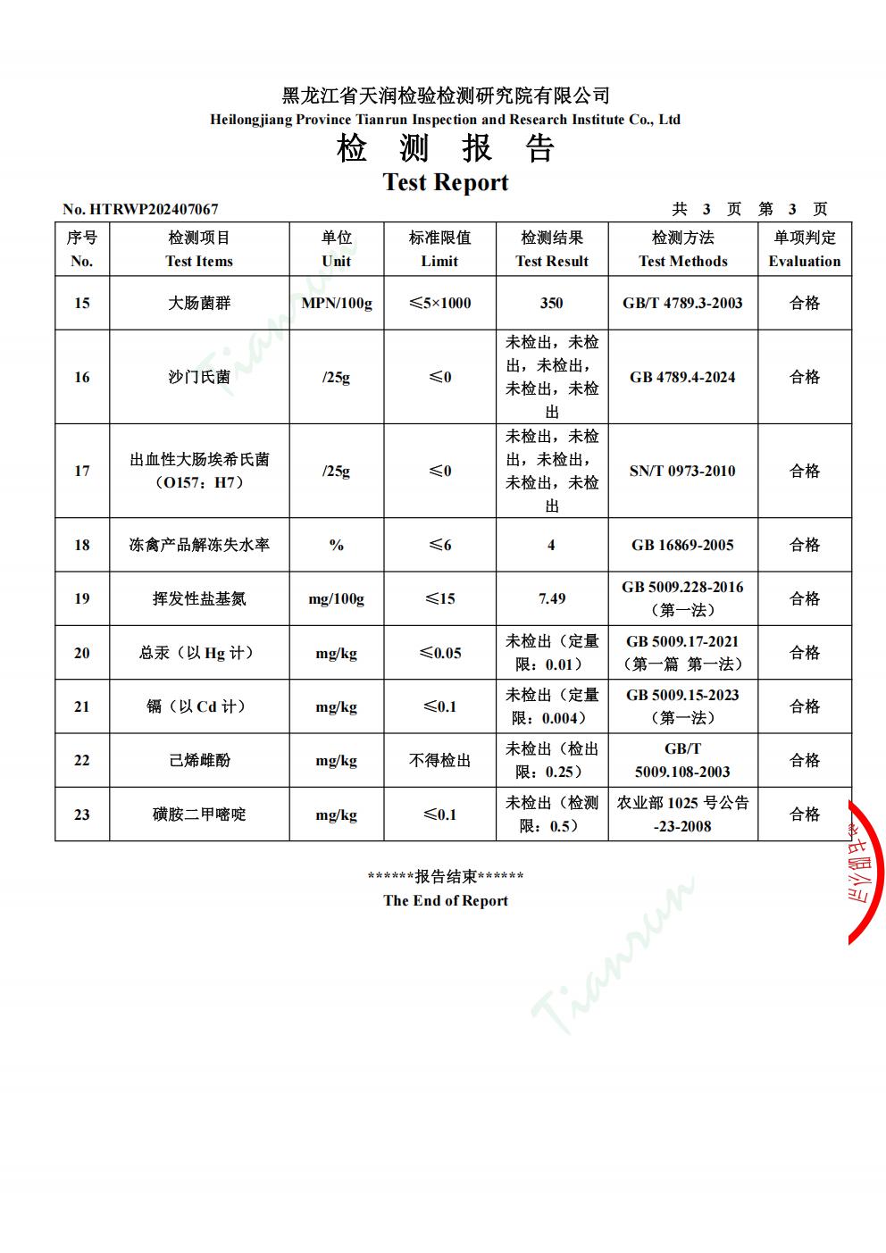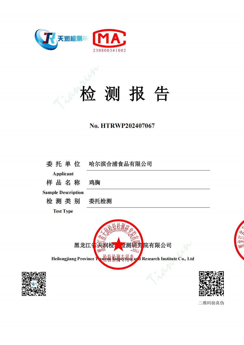 2025年1月份雞肉產(chǎn)品檢測報告