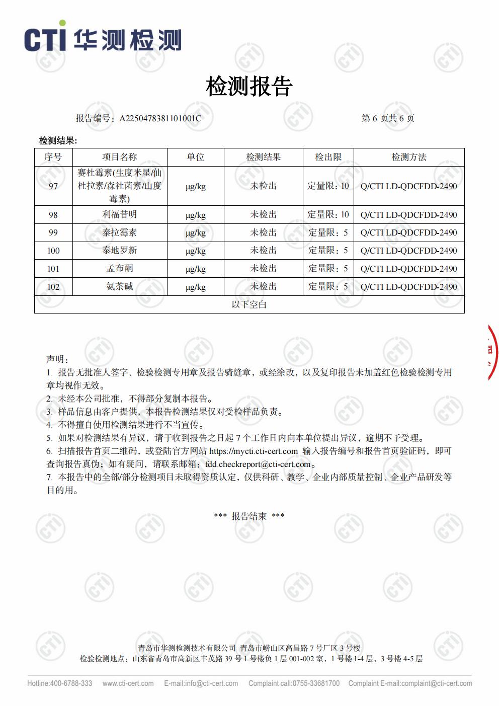 華測102項檢測雞肉產(chǎn)品報告